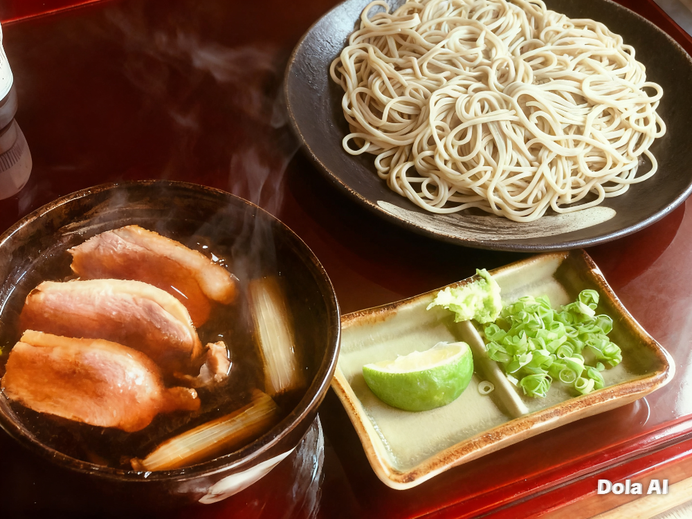 国産鶏八割、鴨二割。旨みを重ねた温そば。