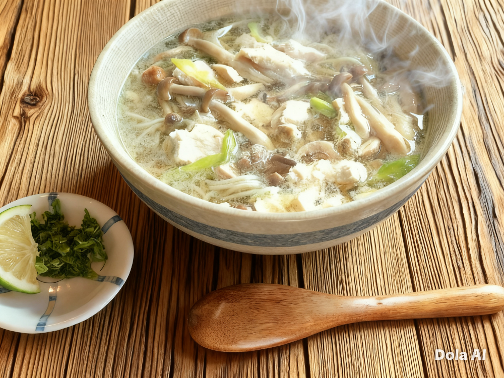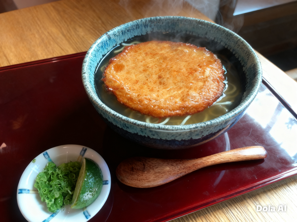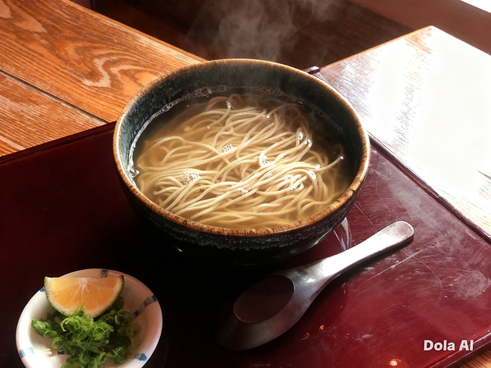 茹でたて数秒。卵を溶いた熱々の出汁で。