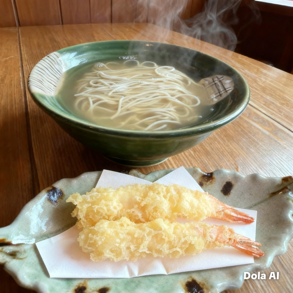 揚げたて海老天と温かい出汁。軽やかな定番。