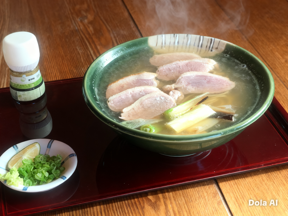 国産鴨の抱き身を煮出した温かいつけ汁。鴨のコクが重なる、深い一杯。